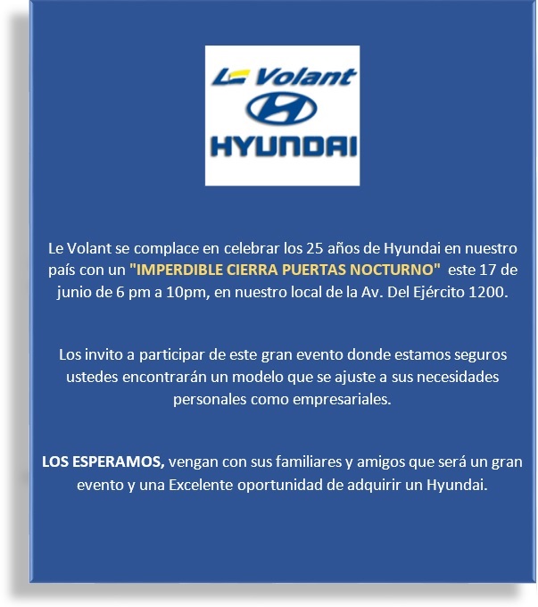 Se comunica a los asociados el GRAN CIERRA PUERTAS NOCTURNO HYUNDAI: